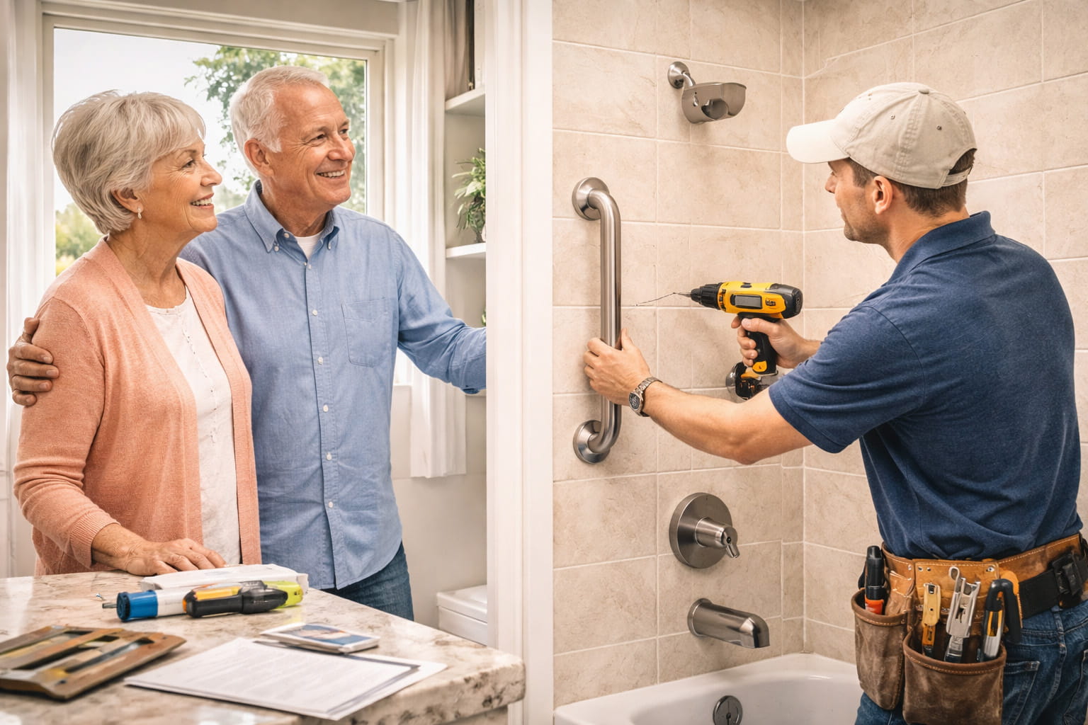 Grab bar installation is a component of SPC Home Solutions’ Aging in Place Program, which coordinates plumbing, electrical, and handyman modifications in a single visit rather than requiring homeowners to schedule and manage multiple contractors separately. The Safety Starter package, starting at $599, includes a grab bar installation alongside an electrical safety walkthrough and written home safety report.